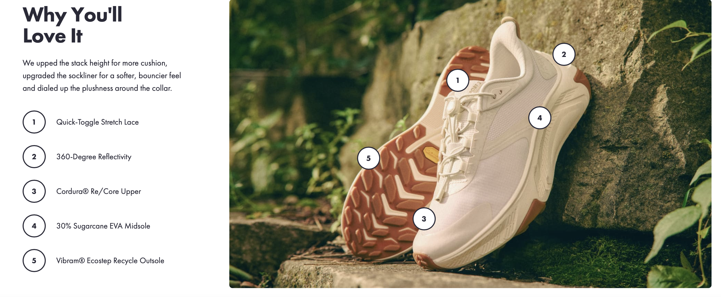 Boosting the comfort of the original, the Transport 2 is back with its famous city-to-trail versatility. This version softens the step-in feel with a higher stack height, cushier sockliner, and plusher collar. Designed with sustainably minded details with a 30% sugarcane EVA midsole and Vibram® EcoStep Recycle outsole, we’ve topped the Transport 2 with a quick-toggle lace, durable water-repellent treatment, and 360 degrees of reflectivity so it’s ready for life’s adventures.